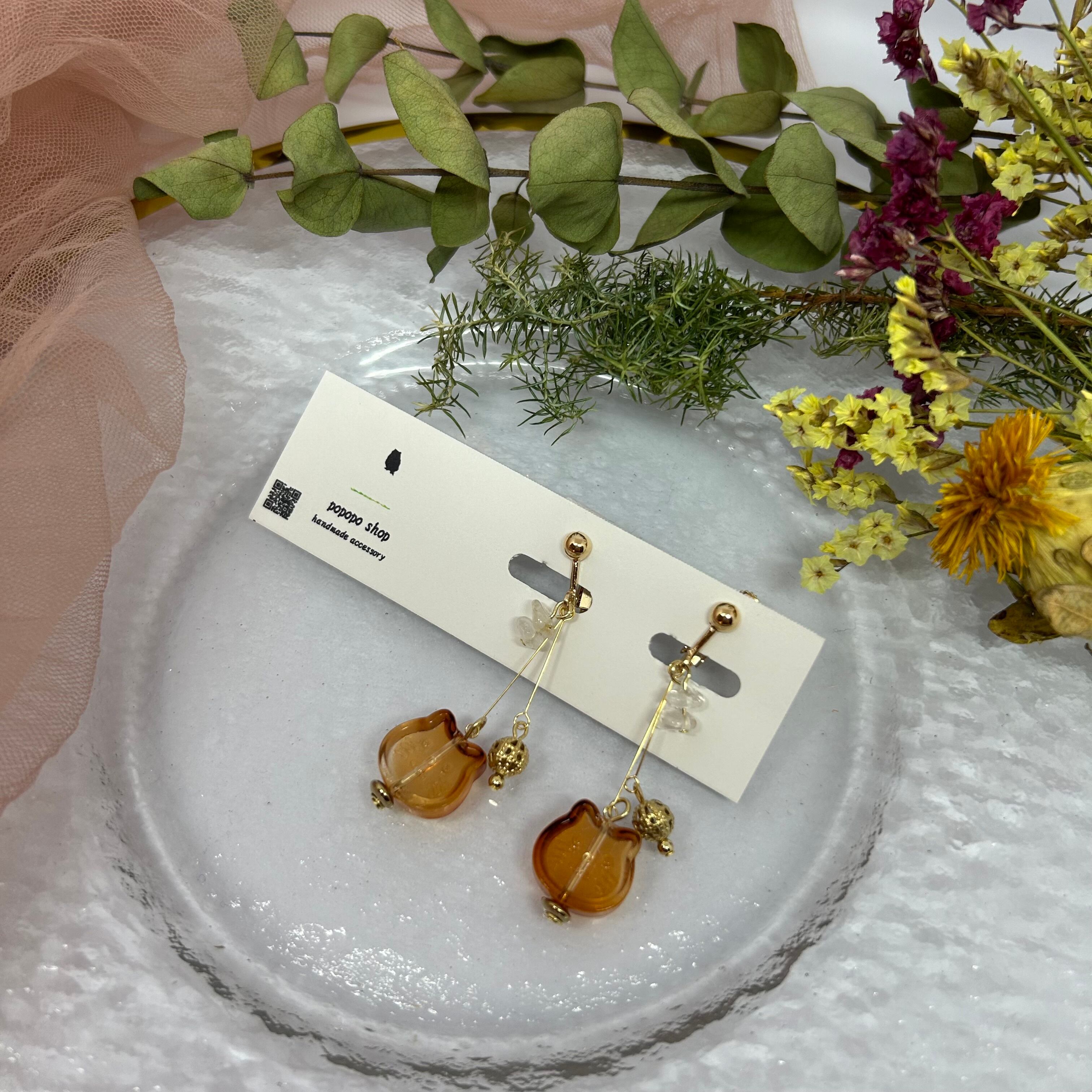 猫のガラスビーズを使ったデザインのピアス・イヤリングです!
