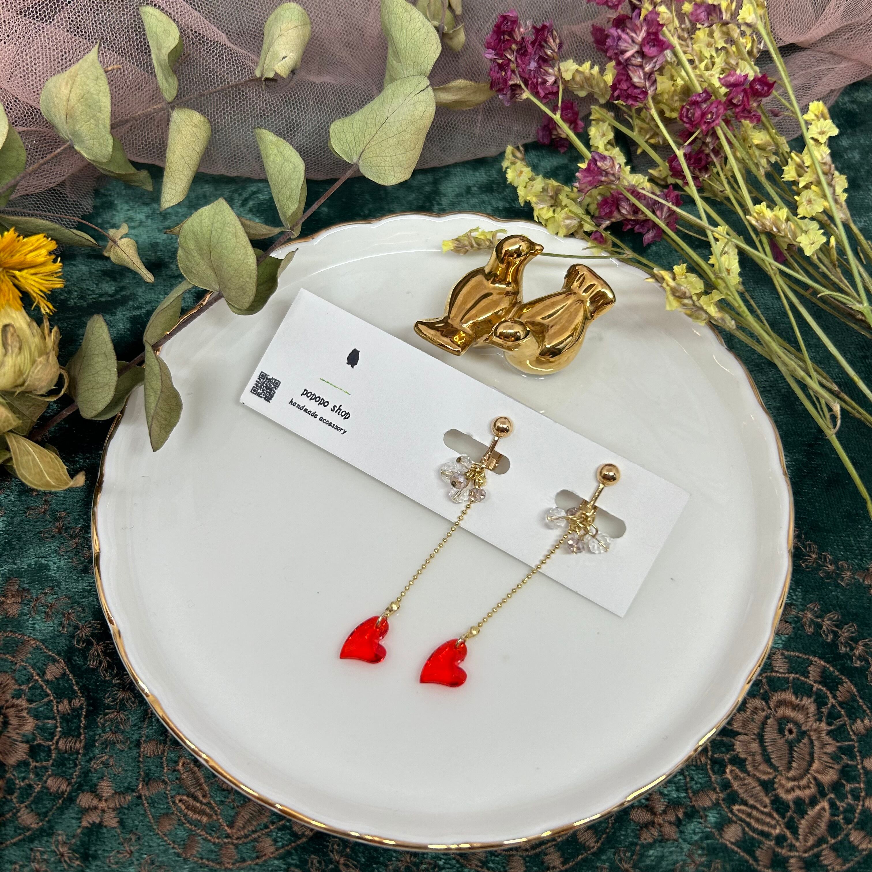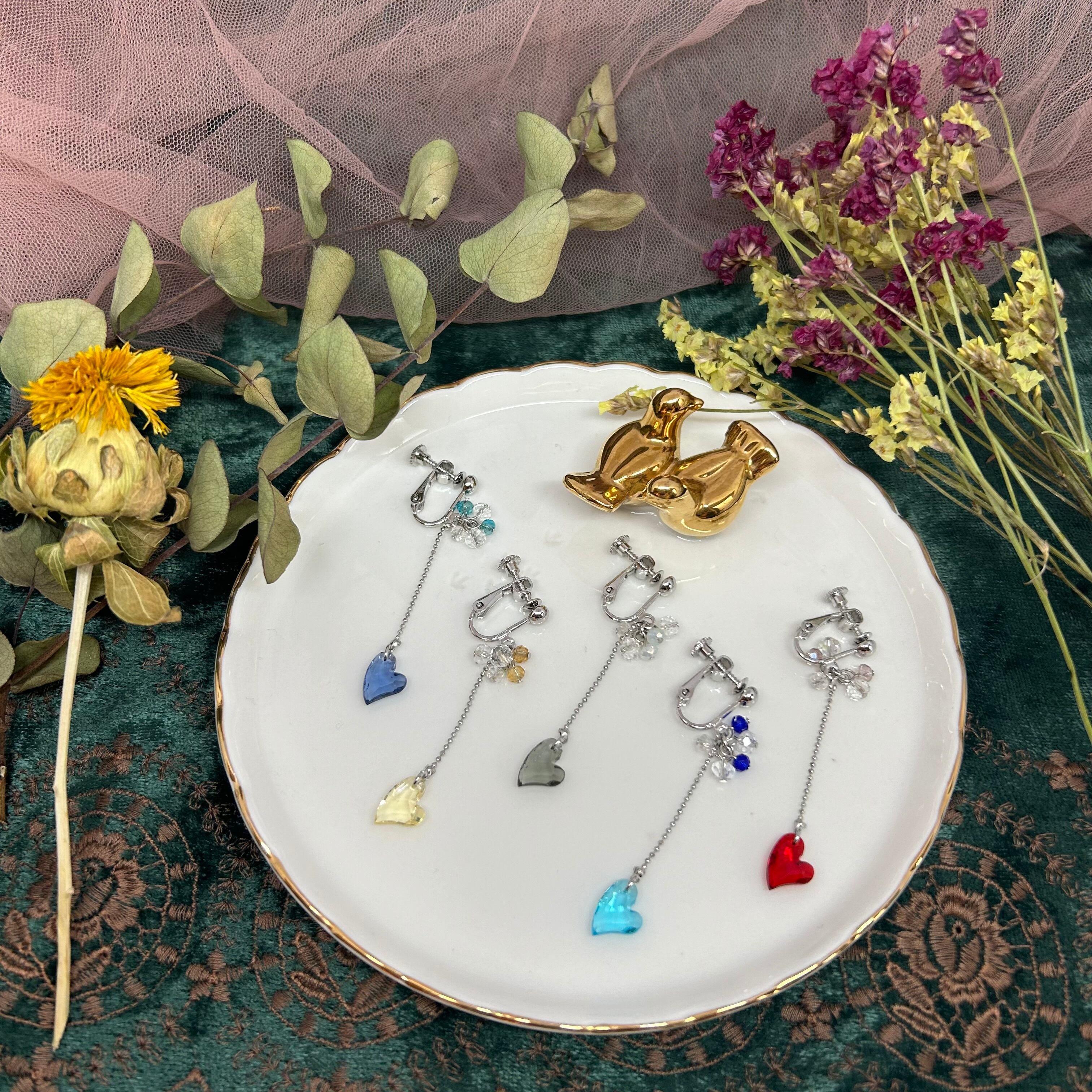 ハートのガラスビーズが揺れてかわいいデザインです♡
